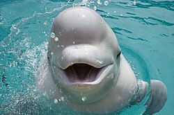 As of 2006, 30 belugas lived in Canada and 28 in the United States. 42 deaths in captivity had been reported.[96] A single specimen can reportedly fetch up to US$100,000 (£64,160). The beluga's popularity is due to its unique color and its facial expressions. The latter is possible because while most cetacean "smiles" are fixed, the extra movement afforded by the beluga's unfused cervical vertebrae allows a greater range of apparent expression.[98]