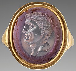 Calandrelli, Giovanni (c. 1820), "Amethyst intaglio depicting Mark Antony", signed ΓΝΑΙΟϹ (Script error: The function "transl" does not exist.), J. Paul Getty Museum, No. 2001.28.1, CARC:1839-1772