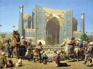 From 1756 to 1868, it was ruled by the Manghud Emirs of Bukhara.[63] The revival of the city began during the reign of the founder of the Uzbek dynasty, the Mangyts, Muhammad Rakhim (1756–1758), who became famous for his strong-willed qualities and military art. Muhammad Rakhimbiy made some attempts to revive Samarqand.[64]