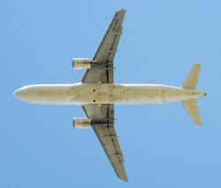 | A Jetstar A320 in flight: a low-wing airliner with twin underwing turbofans | |