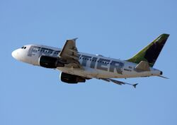 The 107-seater was launched on 26 April 1999 with the options and orders count at 109 aircraft.[6] After three years of design, the maiden flight took place at Hamburg on 15 January 2002.[37] Tests on the lead engine, the PW6000, revealed worse-than-expected fuel consumption.[38] Consequently, Pratt & Whitney abandoned the five-stage high-pressure compressor (HPC) for the MTU-designed six-stage HPC. The 129 order book for the A318 shrunk to 80 largely because of switches to other A320 family members.[38] After 17 months of flight certification, during which 850 hours and 350 flights were accumulated, JAA certification was obtained for the CFM56-powered variant on 23 May 2003.[38] On 22 July 2003, first delivery for launch customer Frontier Airlines occurred,[6] entering service before the end of the month.