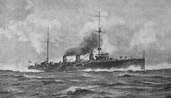 4 in (100 mm)[42] | 3,760 long tons (3,820 t)[42] | 2 shafts, 2 vertical triple-expansion steam engines, 11,530 ihp (8,600 kW), 22.9 kn (42.4 km/h; 26.4 mph)[42] | 1907[42] | 25 March 1913[42] | Sold for scrap, 1937[42] |