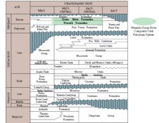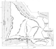 The La Barge oil field was discovered in 1924. Oil was produced from Tertiary sandstones (Wasatch Formation and Green River Formation), within an anticline 600 to 1200 feet deep. The Big Piney-La Barge complex has produced gas since 1956 and oil since 1960. Cumulative production by 1976 was 65 million bbl of oil and over 1.2 Tcf (trillion cubic feet) of gas. Production includes the Cretaceous Mesaverde Formation and Frontier Formation.[12]