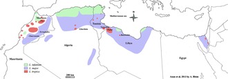 The disease is found across much of Asia, and in the Middle East. Within Afghanistan, leishmaniasis occurs commonly in Kabul, partly due to bad sanitation and waste left uncollected in streets, allowing parasite-spreading sand flies an environment they find favorable.[40][41] In Kabul, the number of people infected was estimated to be at least 200,000, and in three other towns (Herat, Kandahar, and Mazar-i-Sharif) about 70,000 more occurred, according to WHO figures from 2002.[42][43] Kabul is estimated as the largest center of cutaneous leishmaniasis in the world, with around 67,500 cases as of 2004.[44] Africa, in particular the East and North,[32] is also home to cases of leishmaniasis.