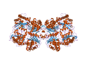 Insulin (,[1][2] from Latin insula, 'island') is a peptide hormone produced by beta cells of the pancreatic islets encoded in humans by the insulin (INS) gene. It is considered to be the main anabolic hormone of the body.[3] It regulates the metabolism of carbohydrates, fats and protein by promoting the absorption of glucose from the blood into liver, fat and skeletal muscle cells.[4] In these tissues the absorbed glucose is converted into either glycogen via glycogenesis or fats (triglycerides) via lipogenesis, or, in the case of the liver, into both.[4] Glucose production and secretion by the liver is strongly inhibited by high concentrations of insulin in the blood.[5] Circulating insulin also affects the synthesis of proteins in a wide variety of tissues. It is therefore an anabolic hormone, promoting the conversion of small molecules in the blood into large molecules inside the cells. Low insulin levels in the blood have the opposite effect by promoting widespread catabolism, especially of reserve body fat.
