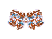 The human insulin protein is composed of 51 amino acids, and has a molecular mass of 5808 Da. It is a heterodimer of an A-chain and a B-chain, which are linked together by disulfide bonds. Insulin's structure varies slightly between species of animals. Insulin from non-human animal sources differs somewhat in effectiveness (in carbohydrate metabolism effects) from human insulin because of these variations. Porcine insulin is especially close to the human version, and was widely used to treat type 1 diabetics before human insulin could be produced in large quantities by recombinant DNA technologies.[9][10][11][12]