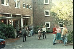 Wye's College's Withersdane Hall was the country's first, post war, purpose built hall of residence though constructed around a pre-existing mansion.[7](p488) It included Swanley Hall auditorium; facilities for breakfast catering; lounges; laundry; formal gardens; tennis courts; woodland car parking; extensive lawns,[81][109] and could be configured as a residential conference centre. CEAS operated from premises on the site.[68](p86) Between 1986 and 1993 Lloyds Bank, Dunstan Skilbeck and Bernard Sunley halls of residence were added to the complex.[62](p98)