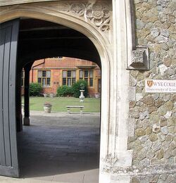 The College of St Gregory and St Martin at Wye, commonly known as Wye College, was an education and research institution in the village of Wye, Kent. In 1447, Cardinal John Kempe founded his chantry there which also educated local children.[3](p18) (As of 2020), it still includes a rare, complete example of medieval chantry college buildings.[4](p5)