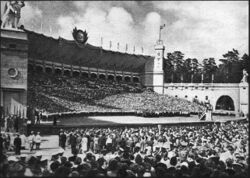 Up to the reassessment of Soviet history in USSR that began during Perestroika, before the USSR had condemned the 1939 secret protocol between Nazi Germany and itself that had led to the invasion and occupation of the three Baltic countries,[38] the events in 1939 were as follows: The Government of the Soviet Union suggested that the Governments of the Baltic countries conclude mutual assistance treaties between the countries. Pressure from working people forced the governments of the Baltic countries to accept this suggestion. The Pacts of Mutual Assistance were then signed[39] which allowed the USSR to station a limited number of Red Army units in the Baltic countries. Economic difficulties and dissatisfaction of the populace with the Baltic governments' policies that had sabotaged fulfilment of the Pact and the Baltic countries governments' political orientation towards Nazi Germany led to a revolutionary situation in June, 1940. To guarantee fulfilment of the Pact, additional military units entered Baltic countries, welcomed by the workers who demanded the resignations of the Baltic governments. In June under the leadership of the Communist Parties political demonstrations by workers were held. The fascist governments were overthrown, and workers' governments formed. In July 1940, elections for the Baltic Parliaments were held. The "Working People's Unions", created by an initiative of the Communist Parties, received the majority of the votes.[40] The Parliaments adopted the declarations of the restoration of Soviet powers in Baltic countries and proclaimed the Soviet Socialist Republics. Declarations of Estonia's, Latvia's and Lithuania's wishes to join the USSR were adopted and the Supreme Soviet of the USSR petitioned accordingly. The requests were approved by the Supreme Soviet of the USSR.