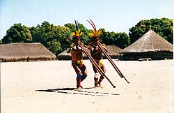 Amongst the oldest evidence for human presence in South America is the Monte Verde II site in Chile, suggested to date to around 14,500 years ago.[16] From around 13,000 years ago, the Fishtail projectile point style became widespread across South America, with its disappearance around 11,000 years ago coincident with the disappearance of South America's megafauna.[17] Maize was present in northern South America by around 6,000 years ago.[18]