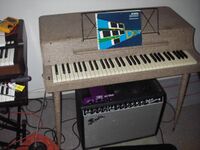 From Handwiki An electric piano is a musical instrument which produces sounds when a performer presses the keys of a piano-style musical keyboard. Pressing keys causes mechanical hammers to strike metal strings, metal reeds or wire tines, leading to vibrations which are converted into electrical signals by pickups (either magnetic, electrostatic or piezoelectric) which are then connected to an instrument amplifier and loudspeaker to make a sound loud enough for the performer and audience to hear. Unlike a synthesizer, the electric piano is not an electronic instrument. Instead, it is an electro-mechanical instrument. Some early electric pianos used lengths of wire to produce the tone, like a traditional piano. Smaller electric pianos used short slivers of steel to produce the tone (a lamellophone with a keyboard & pickups). The earliest electric pianos were invented in the late 1920s; the 1929 Neo-Bechstein electric grand piano was among the first. Probably the earliest stringless model was Lloyd Loar's Vivi-Tone Clavier. A few other noteworthy producers of electric pianos include Baldwin Piano and Organ Company and the Wurlitzer Company.