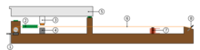 The tuning fork here refers to the struck element having two vibrating parts – physically it bears little resemblance to a traditional type. In Fender Rhodes instruments, the struck portion of the "fork" is a tine of stiff steel wire. The other part of the fork, parallel and adjacent to the tine, is the tonebar, a sturdy steel bar which acts as a resonator and adds sustain to the sound. The tine is fitted with a spring which can be moved along its length to allow the pitch to be varied for fine-tuning. The tine is struck by the small neoprene (originally felt) tip of a hammer activated by a greatly simplified piano action (each key has only three moving parts including the damper). Each tine has an electromagnetic pickup placed just beyond its tip (see also tonewheel). The Rhodes piano has a distinctive bell-like tone, fuller than the Wurlitzer, with longer sustain and with a "growl" when played hard.