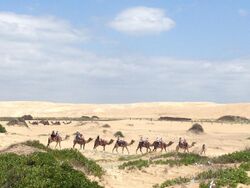 Coastal sand dunes can provide privacy and/or habitats to support local flora and fauna. Animals such as sand snakes, lizards, and rodents can live in coastal sand dunes, along with insects of all types.[44] Often the vegetation of sand dunes is discussed without acknowledging the importance that coastal dunes have for animals. Further, some animals, such as foxes and feral pigs can use coastal dunes as hunting grounds to find food.[45] Birds are also known to utilize coastal dunes as nesting grounds. All these species find the coastal environment of the sand dune vital to their species' survival.