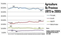 Pakistan was a middle class and predominantly agricultural country when it gained independence in 1947. Pakistan's average economic growth rate in the first five decades (1947–1997) has been higher than the growth rate of the world economy during the same period. Average annual real GDP growth rates[65] were 6.8% in the 1960s, 4.8% in the 1970s, and 6.5% in the 1980s. Average annual growth fell to 4.6% in the 1990s with significantly lower growth in the second half of that decade.[66]