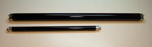 A black light lamp emits long-wave UV‑A radiation and little visible light. Fluorescent black light lamps work similarly to other fluorescent lamps, but use a phosphor on the inner tube surface which emits UV‑A radiation instead of visible light. Some lamps use a deep-bluish-purple Wood's glass optical filter that blocks almost all visible light with wavelengths longer than 400 nanometers.[33] The purple glow given off by these tubes is not the ultraviolet itself, but visible purple light from mercury's 404 nm spectral line which escapes being filtered out by the coating. Other black lights use plain glass instead of the more expensive Wood's glass, so they appear light-blue to the eye when operating.