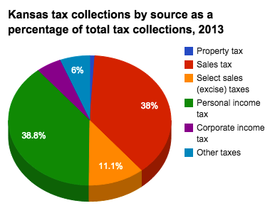 The table below lists tax collections by source as a percentage of total collections for Kansas and neighboring states in 2013.[3]