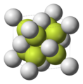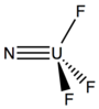 The uranium dinitride (UN2) compound has a face-centered cubic crystal structure of the calcium fluoride (CaF2) type with a space group of Fm3m.[13] Nitrogen forms triple bonds on each side of uranium forming a linear structure.[14][15]