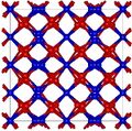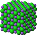 UN has a face-centered cubic crystal structure of the NaCl type.[14][16] The metal component of the bond uses the 5f orbital of the uranium but forms a relatively weak interaction but is important for the crystal structure. The covalent portion of the bonds forms from the overlap between the 6d orbital and 7s orbital on the uranium and the 2p orbitals on the nitrogen.[14][17] N forms a triple bond with uranium creating a linear structure.[15]