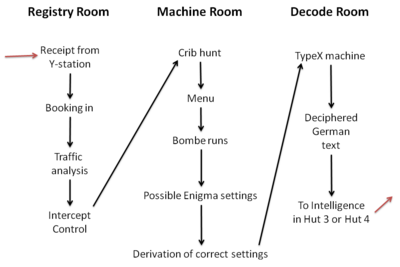 Although Britain could now intercept German communications, codes and ciphers were used to hide the meaning of the messages. Neither Britain nor Germany had any established organisations to decode and interpret the messages at the start of the war - the Royal Navy had only one wireless station for intercepting messages, at Stockton-on-Tees.[6][7]
