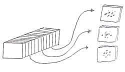 Bread loafing is a common method of processing surgical specimens for histopathology. The process involves cutting the specimen into 3 or more sections.[1] The cut sections are mounted by embedding in paraffin or frozen medium. The cut edge is then thinly sliced with a microtome or a cryostat. The thin slices are then mounted on a glass slide, stained, and covered with another layer of glass.