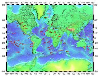 - [ ⚑ ] 0°24′S 91°36′W / 0.4°S 91.6°W / -0.4; -91.6 (Galápagos hotspot) [19]