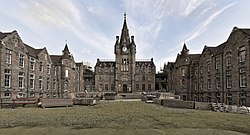 Towards the end of the 19th century, Old College was becoming overcrowded. After a bequest from Sir David Baxter, the university started planning new buildings in earnest. Sir Robert Rowand Anderson won the public architectural competition and was commissioned to design new premises for the Medical School in 1877.[56] Initially, the design incorporated a campanile and a hall for examination and graduation, but this was seen as too ambitious. The new Medical School opened in 1884, but the building was not completed until 1888.[57] After funds were donated by politician and brewer William McEwan in 1894, a separate graduation building was constructed after all, also designed by Anderson.[58] The resulting McEwan Hall on Bristo Square was presented to the university in 1897.[59]