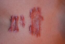 - ↑ "UpToDate". https://www.uptodate.com/contents/keloids-and-hypertrophic-scars?search=hypertrophic scars&source=search_result&selectedTitle=1~61&usage_type=default&display_rank=1.