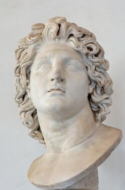 Barsine was a noble Greek-Persian, daughter of Artabazus, and wife of Memnon. After Memnon's death, several ancient historians have written of a love affair between her and Alexander. Plutarch writes, "At any rate Alexander, so it seems, thought it more worthy of a king to subdue his own passions than to conquer his enemies, and so he never came near these women, nor did he associate with any other before his marriage, with the exception only of Barsine. This woman, the widow of Memnon, the Greek mercenary commander, was captured at Damascus. She had received a Greek education, was of a gentle disposition, and could claim royal descent, since her father was Artabazus who had married one of the Persian king's daughters. These qualities made Alexander the more willing he was encouraged by Parmenio, so Aristobulus tells us to form an attachment to a woman of such beauty and noble lineage."[15] In addition Justin writes, "As he afterwards contemplated the wealth and display of Darius, he was seized with admiration of such magnificence. Hence it was that he first began to indulge in luxurious and splendid banquets, and fell in love with his captive Barsine for her beauty, by whom he had afterwards a son that he called Heracles."[16]