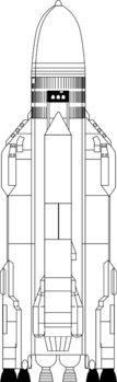 The Polyus satellite was a prototype orbital weapons platform designed to destroy Strategic Defense Initiative satellites with a megawatt carbon-dioxide laser.[92] Launched mounted upside-down on its Energia rocket, its single flight test was a failure when the inertial guidance system failed to rotate it 180° and instead rotated a complete 360°.[93]