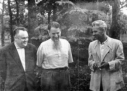 In 1933 GIRD was merged with GDL[22] by the Soviet government to form the Reactive Scientific Research Institute (RNII),[29] which brought together the best of the Soviet rocket talent, including Korolev, Langemak, Ivan Kleymyonov and former GDL engine designer Valentin Glushko.[33][34] Early success of RNII included the conception in 1936 and first flight in 1941 of the RP-318 the Soviets first rocket-powered aircraft and the RS-82 and RS-132 missiles entered service by 1937,[35] which became the basis for development in 1938 and serial production from 1940 to 1941 of the Katyusha multiple rocket launcher, another advance in the reactive propulsion field.[36][37][38] RNII's research and development were very important for later achievements of the Soviet rocket and space programs.[38][21]