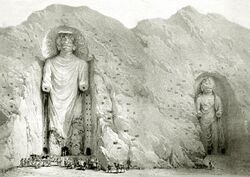 The Hephthalites conquered Bamyan in the 5th century. After their Khanate was destroyed by the Sassanids and Turks in 565, Bamyan became the capital of the small Kushano-Hephthalite kingdom until 870, when it was conquered by the Saffarids. Favoured by its location on one of the main trade routes from the West to China and India , the valley was of great strategic importance. It became a stop for trade caravans, a well-known artistic site and was also a major Buddhist center for centuries. It later fell to the Ghaznavids in the 11th century. Bamiyan was Islamized under the reign of Sultan Mahmud. This was around the time of the first millennium AD. At that time, the center of the city of Bamiyan was moved from the northwest of the valley, where the cliff with the Buddha statues is located, further to the southeast. Some of the fortifications in the valley also date from this period.[19] During the Ghurids rule, Bamiyan was the capital of a large kingdom for about 60 years, namely from 1155 to 1212, which stretched north to the Oxus River (today's Amu Darya).[19][18] In 1221 the city and its population were said to be completely wiped out by Genghis Khan. It is claimed that he was taking revenge for his slain grandson. Bamiyan was unable to recover from this event for a long time. Even decades later, the city was still devastated, according to a report by a Persian historian.[20] Several decades passed before a town appeared in the valley again, but it could only acquire regional importance. The Qarlughids established their capital in the city soon thereafter. There is some evidence that Bamyan was somewhat populated and reconstructed during the Timurid period in the 15th century.