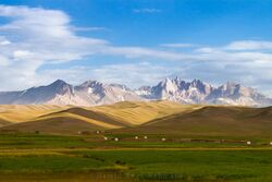 "Bamiyan is located between the Indian subcontinent (to the southeast) and Central Asia (to the north), which made it an important location close to one of the most important branches of the Silk Route".[14] Situated on the ancient Silk Route, the town was at the crossroads between the East and West when all trade between China and the Middle East passed through it. The Hunas made it their capital in the 5th century. Because of the cliff of the Buddhas, the ruins of the Monk's caves, Shahr-e Gholghola ('City of Sighs', the ruins of an ancient city destroyed by Genghis Khan during the 1221 siege of Bamiyan), and its local scenery, it is one of the most visited places in Afghanistan. The Shahr-e Zuhak mound ten miles south of the valley is the site of a citadel that guarded the city, and the ruins of an acropolis could be found there as recently as the 1990s.[15]