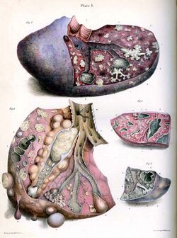 ↑ (in fr) De l'auscultation médiate …. vol. 1. Paris, France: J.-A. Brosson et J.-S Chaudé. 1819. p. 20. https://books.google.com/books?id=LcZEAAAAcAAJ&pg=PA20. From p. 20: "L'existence des tubercules dans le poumon est la cause et constitue le charactère anatomique propre de la phthisie pulmonaire (a). (a) … l'effet dont cette maladie tire son nom, c'est-à-dire, la consumption." (The existence of tubercles in the lung is the cause and constitutes the unique anatomical characteristic of pulmonary tuberculosis (a). (a) … the effect from which this malady [pulmonary tuberculosis] takes its name, that is, consumption.)