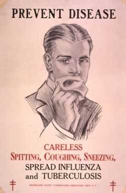↑A New Theory of Consumptions—More Especially a Phthisis or Consumption of the Lungs. London, England: T. Knaplock. 1720. https://babel.hathitrust.org/cgi/pt?id=ucm.5320214800&view=1up&seq=7. P. 51: "The Original and Essential Cause … may possibly be some certain Species of Animalcula or wonderfully minute living Creatures, … " P. 79: "It may be therefore very likely, that by an habitual lying in the same Bed with a Consumptive Patient, constantly Eating and Drinking with him, or by very frequently conversing so nearly, as to draw in part of the Breath he emits from his Lungs, a Consumption may be caught by a sound Person; … "