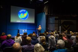 The SMILE Outreach working group aims to promote SMILE and its science among the general public, amateur science societies and school pupils of any age. Members of the group are active in giving presentations illustrating the science which SMILE will produce and the impact it will have on our knowledge of solar-terrestrial interactions. They generate contacts with organisations promoting science in primary and secondary schools, particularly in socio-economical deprived areas, hold hands-on workshops and promote careers in science. The group is focusing on SMILE as a practical example of how space projects are developed, and encouraging pupils to follow its progress to launch and beyond. It also promotes international exchanges, a good example of which is the translation of the book 'Aurora and Spotty' for children (and maybe for some adults too), originally in Spanish, into Chinese.