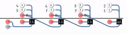 A full adder adds binary numbers and accounts for values carried in as well as out. A one-bit full-adder adds three one-bit numbers, often written as , , and ; and are the operands, and is a bit carried in from the previous less-significant stage.[4] The full adder is usually a component in a cascade of adders, which add 8, 16, 32, etc. bit binary numbers. The circuit produces a two-bit output. Output carry and sum are typically represented by the signals and , where the sum equals .