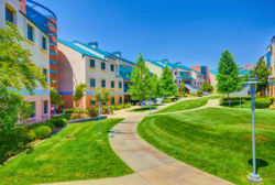 Of the 511 acres (207 ha) of UCR property constituting West Campus, approximately 216 acres (87 ha) along University Avenue have been developed. These include facilities such as University Extension, the United States Department of Agriculture (USDA) Germplasm Repository, International Village (student housing), Human Resources and Highlander Hall. University Village, a mixed use commercial development, features a movie theater, stores, restaurants, office space, and an apartment complex, along with a parking structure and surface parking. Citrus groves and row crops occupy the remaining 295 acres (119 ha) stretching northwest to the intersection of Chicago Avenue and Le Conte Drive. Plans for future expansion include converting a portion of these fields into new UCR infrastructure.[30]
