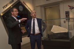 Then U.S. Secretary of Defense Ash Carter meets with Bezos in 2016 at The Pentagon.