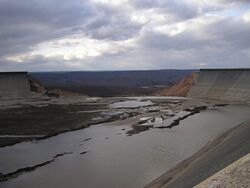 Ameren Missouri owns the Taum Sauk pumped storage plant,[25] which failed on December 14, 2005, causing extensive damage to the east fork of the Black River and to Johnson's Shut-Ins State Park. Consequently, FERC fined Ameren $15 million. The State of Missouri has sued Ameren for actual and punitive damages, alleging Ameren recklessly operated the plant and put financial considerations from sale of power to other companies over safety, maintenance and engineering. The plant was operated by remote control with no one onsite during pumping operations. Rebuilding the upper reservoir of the AmerenUE Taum Sauk pumped-storage hydroelectric plant cost $450 million. The upper reservoir was constructed with roller compacted concrete (RCC); and online in 2010, this 54.5-acre (221,000 m2) reservoir is the largest RCC dam in North America.[26] The 450-megawatt Taum Sauk pumped storage hydroelectric plant began generating electricity again on April 21, 2010.
