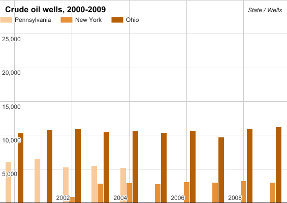Crude oil wells in Pennsylvania and neighboring states (2000-2009)