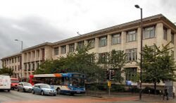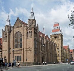 Other notable buildings in the Oxford Road Campus include the Stephen Joseph Studio, a former German Protestant church and the Samuel Alexander Building, a grade II listed building[46] erected in 1919 and home of the School of Arts, Languages and Cultures.