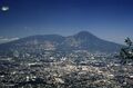 The massive San Salvador volcano dominates the landscape and skyline west of the city of San Salvador.