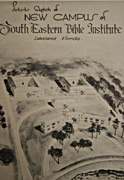 Southeastern University was founded in 1935 in New Brockton, Alabama by Assemblies of God Alabama District superintendent J.C. Thames and other Southeastern district leaders as the Alabama Shield of Faith Institute.[1][2] It was renamed the South-Eastern Bible Institute (SEBI) in 1936. Originally located in a former high school building in New Brockton, Alabama, it opened its doors to students on November 4, 1935, under the direction of four faculty members. Two years later, in May 1937, the first graduation exercises were held. Seventeen students received diplomas for the two-year academic program.[citation needed]