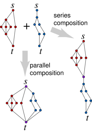 In a similar way one may define series–parallel digraphs, constructed from copies of single-arc graphs, with arcs directed from the source to the sink.