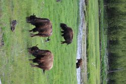 The conservation of bison in North America is an ongoing, diverse effort to bring American bison (Bison bison) back from the brink of extinction. Plains bison, a subspecies (Bison bison bison), are a keystone species in the North American Great Plains. Bison are a species of conservation concern in part because they suffered a severe population bottleneck at the end of the 19th century. The near extinction of the species during the 1800s unraveled fundamental ties between bison, grassland ecosystems, and indigenous peoples’ cultures and livelihoods.# English speakers used the word buffalo for this animal when they arrived.[1] Bison was used as the scientific term to distinguish them from the true buffalo. Buffalo is commonly used as it continues to hold cultural significance, particularly for Indigenous people.[2] Recovery began in the late 1800s with a handful of individuals independently saving the last surviving bison.# Dedicated restoration efforts in the 1900s bolstered bison numbers though they still exist in mostly small and isolated populations. Expansion of the understanding of bison ecology and management is ongoing. The contemporary widespread, collaborative effort includes attention to heritage genetics and minimal cattle introgression.#