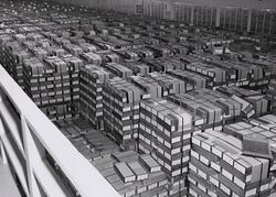 Early electronic computers such as Colossus made use of punched tape, a long strip of paper on which data was represented by a series of holes, a technology now obsolete.[20] Electronic data storage, which is used in modern computers, dates from World War II, when a form of delay-line memory was developed to remove the clutter from radar signals, the first practical application of which was the mercury delay line.[21] The first random-access digital storage device was the Williams tube, which was based on a standard cathode ray tube.[22] However, the information stored in it and delay-line memory was volatile in the fact that it had to be continuously refreshed, and thus was lost once power was removed. The earliest form of non-volatile computer storage was the magnetic drum, invented in 1932[23] and used in the Ferranti Mark 1, the world's first commercially available general-purpose electronic computer.[24]