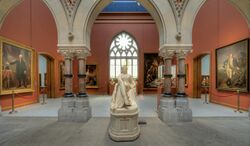 The art collections of the gallery are considered the most valuable in America. They comprise the masterpieces of Stuart, Sully, Allston, West, and others of our early artists, the Gilpin gallery, fine marbles, and facsimiles of famous statues, as well as a magnificent gallery from the antique.[19]