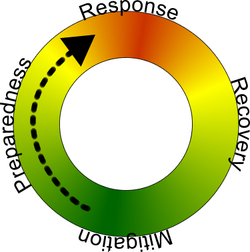 The final phase in the circle is mitigation, which involves taking steps to ensure no re-occurrence is possible, or putting additional plans in place to ensure less damage is done. This should feed back into the preparedness stage, with updated plans in place to deal with future emergencies, thus completing the circle.