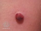 From Mdwiki Melanoma with features of a Spitz nevus (also known as a "Spitzoid melanoma") is a cutaneous condition characterized histologically with tissue similar to a spitz nevus and with overall symmetry and a dermal nodule of epithelioid melanocytes that do not mature with progressively deeper dermal extension.[1]