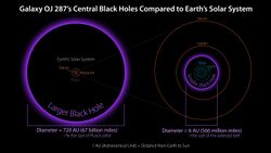 | OJ 287 primary | 1.8×1010[33] | A smaller 100 million M☉ black hole orbits this one in a 12-year period (see OJ 287 secondary below). But this measurement is in question[by whom?] due to the limited number and precision of observed companion orbits. | ||||||||||||||||